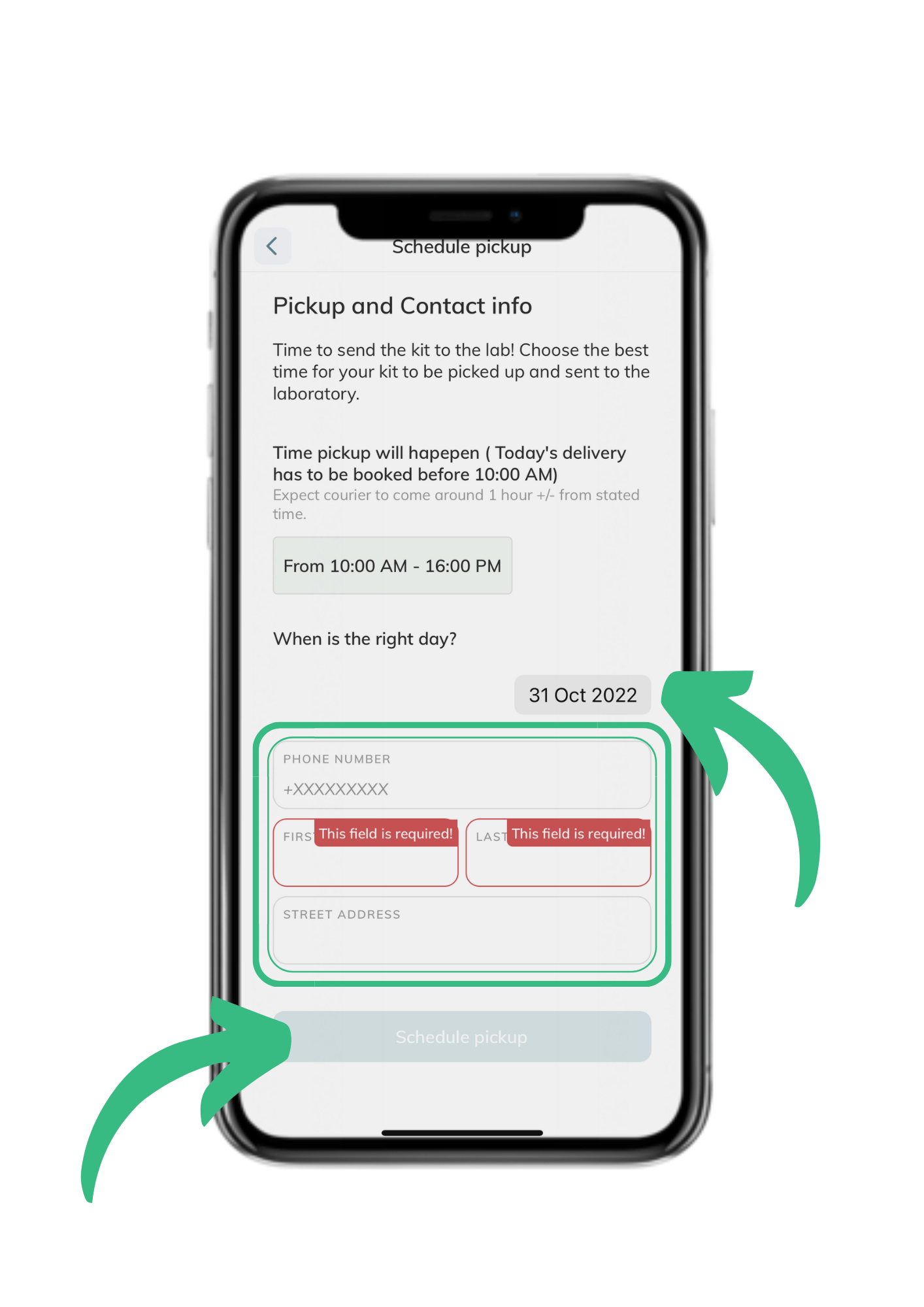Step 14: Add your pickup and contact details. Carefully consider the time and date of collection to ensure you are available for the courier pickup. Click on Schedule pickup at the bottom of the screen.