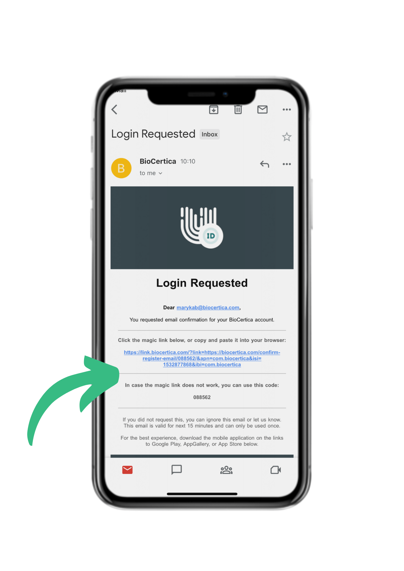 Step 5: Open your email app and click on the Magic link sent. If the link was not successful, enter the code in the email.