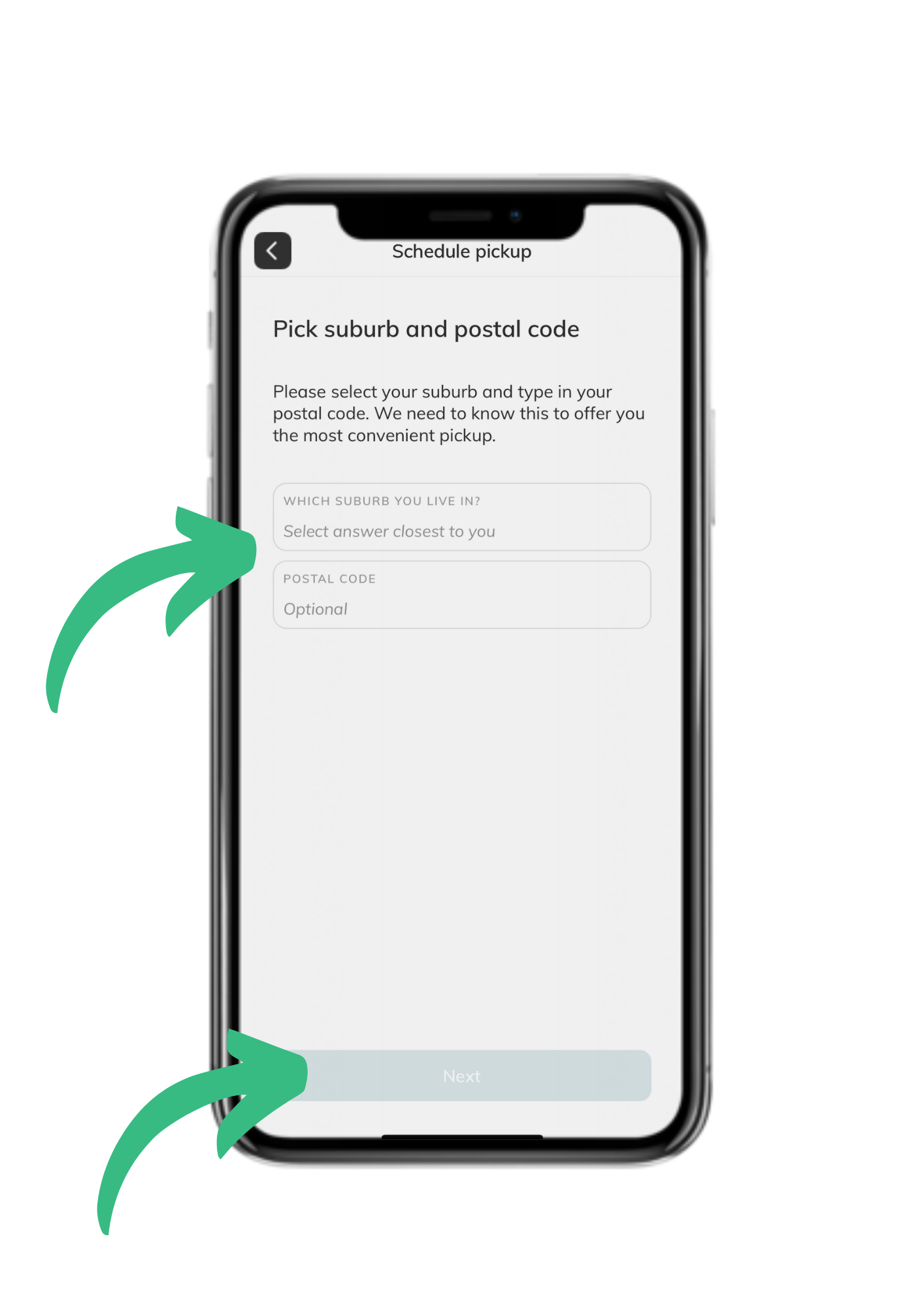 Step 12: Enter your suburb and postal code and click on Next at the bottom of the screen.