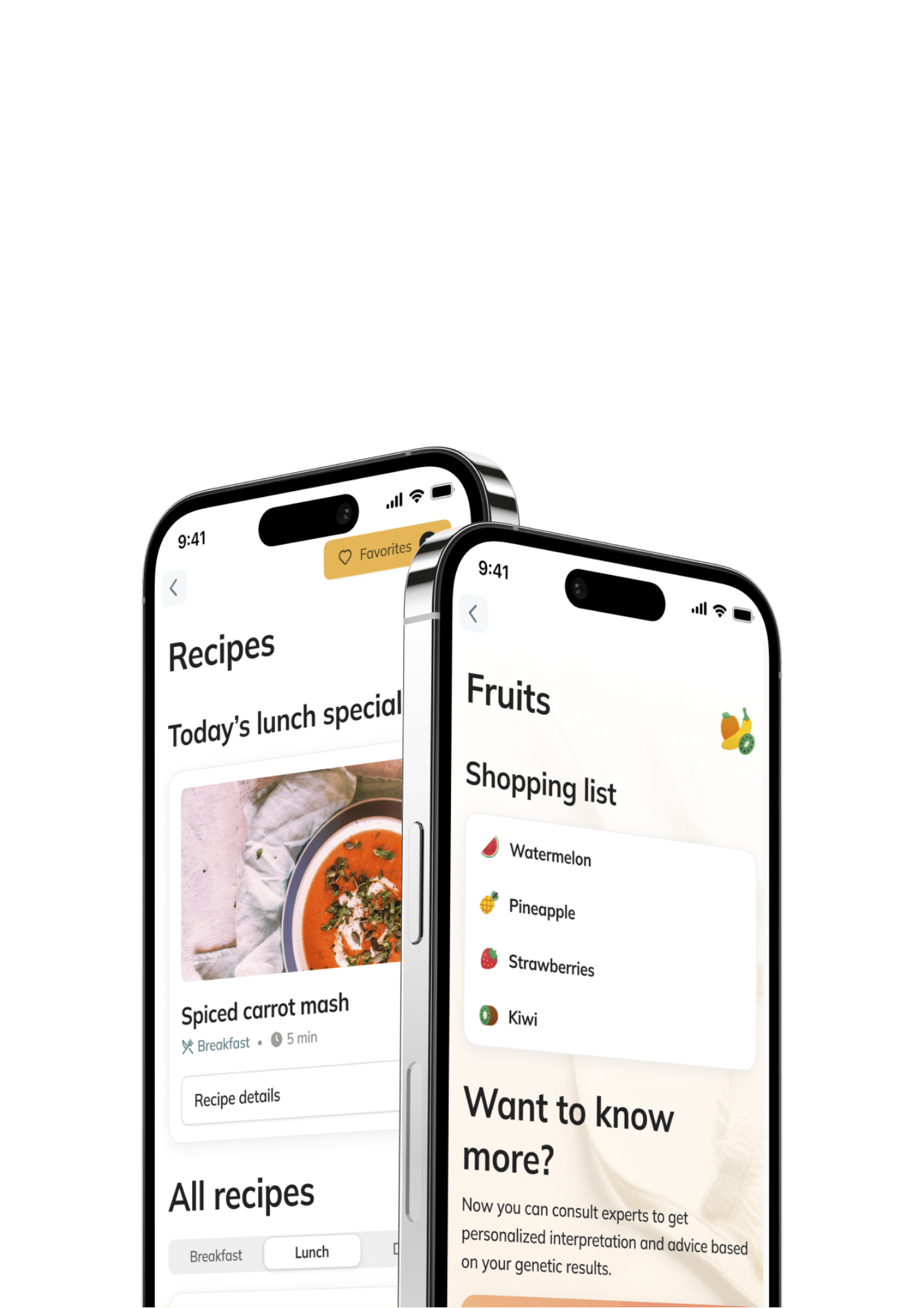 For your convenience we have bundled these recommendations into a go-to shopping list and we give you a variety of delicious and easy recipes that suited to your genetic needs. To get even more out this kit, you can easily book a session with one of our trained dieticians.